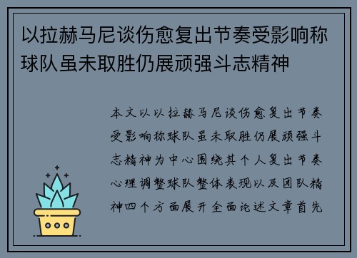 本文将围绕罗尔费斯称埃切韦里出场偏少的原因展开深入分析。根据罗尔费斯的观点,埃切韦里的出场时间受限于球队的整体战术安排,特别是在稳固防守方面的需求,以确保球队的整体表现和攻防平衡。本文将从四个方面探讨这一问题:首先,分析球队战术体系中防守和进攻的平衡;其次,探讨埃切韦里个人特点与战术需求的契合度;接着,讨论球队整体防守水平对埃切韦里出场机会的影响;最后,分析助攻线的发挥如何与埃切韦里的角色密切相关...